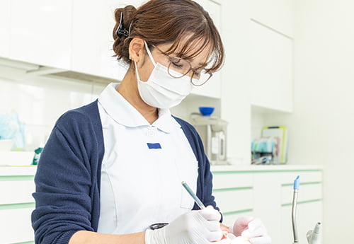 そこでゴム手袋、エプロン、うがい用コップなどはディスポーザブル品を使用、治療器具は個別滅菌パックに封入し、高圧蒸気滅菌器で徹底した滅菌体制をとることで感染経路を断ちます。