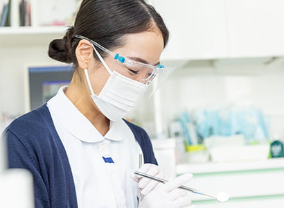 そこでゴム手袋、エプロン、うがい用コップなどはディスポーザブル品を使用、治療器具は個別滅菌パックに封入し、高圧蒸気滅菌器で徹底した滅菌体制をとることで感染経路を断ちます。