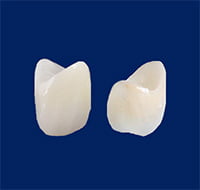 - ジルコニアの上にセラミックスを焼き付けた被せ物。